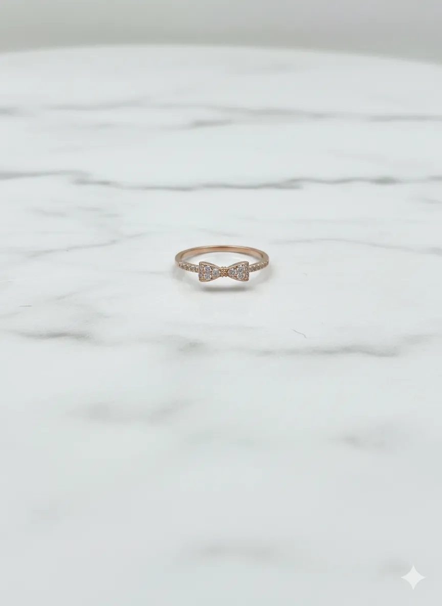 The NIORA Petite Bow Ring is a delicate expression of elegance and charm. Crafted in warm rose gold, this dainty ring features a subtle bow motif at its centre, gently adorned with micro-set diamonds that add a refined sparkle. The slim, polished band enhances its minimalist appeal, making it ideal for effortless everyday wear or as a graceful layering piece. Timeless yet playful, this ring embodies Niora’s signature balance of softness and sophistication.